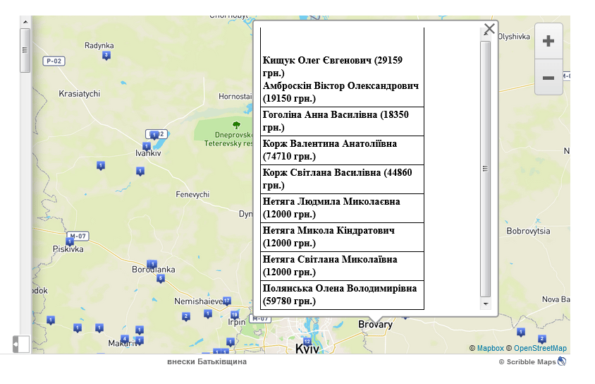 На Броварщині знайшли не найбільше таких донорів, однак вони є. На інтерактивній карті активісти зазначили усіх спонсорів, яких їм удалося ідентифікувати. Серед них 9 із Броварів. Загальна сума внесків становить 270 тис. грн.