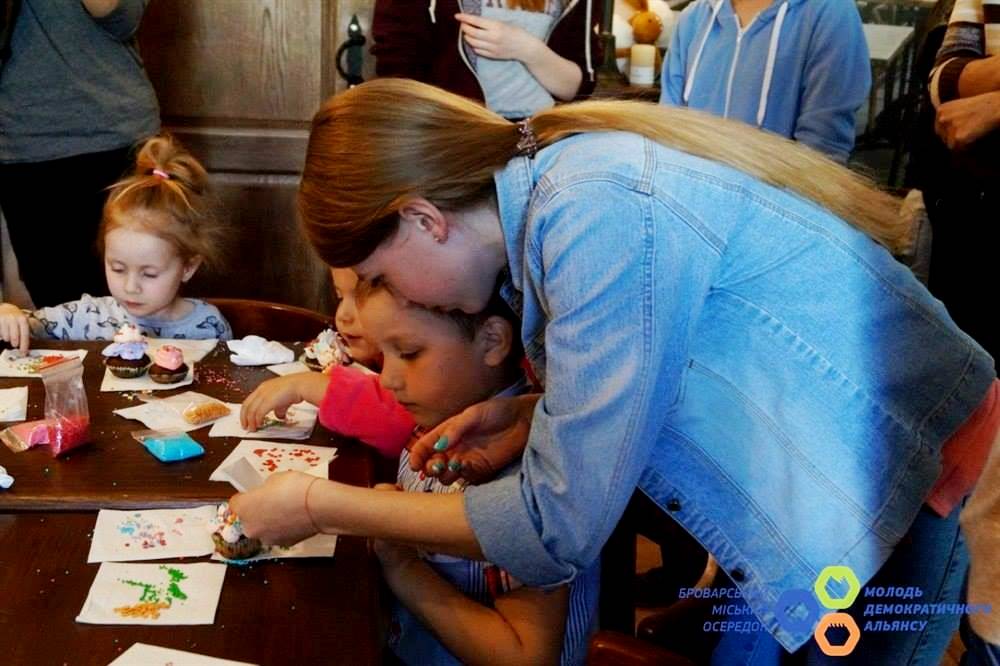 Цього разу майстер-клас проходив у кафе «Штрудель», власниця якого радо погодилась допомогти активістам у організації благодійного проекту. Об 11:00 годині десять діток зайняли свої місця, вимили ручки, приготувались, батьки налаштували свої фотоапарати, і Катерина Бондаренко, волонтер проекту, почала творити диво.
