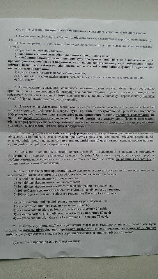 - ознайомлення з юридичною базою (як і коли можна зняти мера та відкликати депутатів)