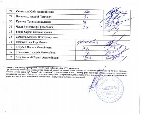 Однак через те, що у броварській міськраді не встигли вчасно підготуватися до виконання закону, відповідну автоматизовану електронну систему у сесійні залі так і не встановили. Тож усі депутати по кожному, в т.ч. технічному питанні, по кожній пропозиції при обговоренні мусили ставити власний підпис та позначку «за», «проти» чи «утримався» на спеціальному листочку, який передавали по залі. Відповідно кожне голосування, яке раніше тривало хвилину-дві, сьогодні розтягувалося на 10, а то й більше хвилин. Зате саме відсьогодні броварчани офіційно знатимуть результати голосування кожного депутата по кожному питанню.